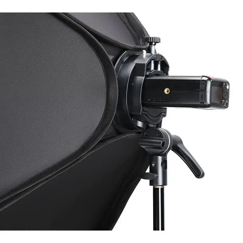 Кронштейн-адаптер S2 изготовлен из прочного пластика и подходит для установки накамерных вспышек с прямоугольной или круглой головкой, таких как Godox V1, V860II, TT685, TT600 и т.д. Кронштейн-адаптер S устанавливается на стандартную стойку 5/8 дюйма и позволяет бесступенчато регулировать угол наклона вспышки в пределах 180° На кронштейне спереди находится крепление Bowens, которое позволяет использовать накамерные вспышки с различным светомодификаторами: софтбоксами, конусами, портретными тарелками, шторками и т. д. В нижней части кронштейна находится отверстие для крепления фотозонта.