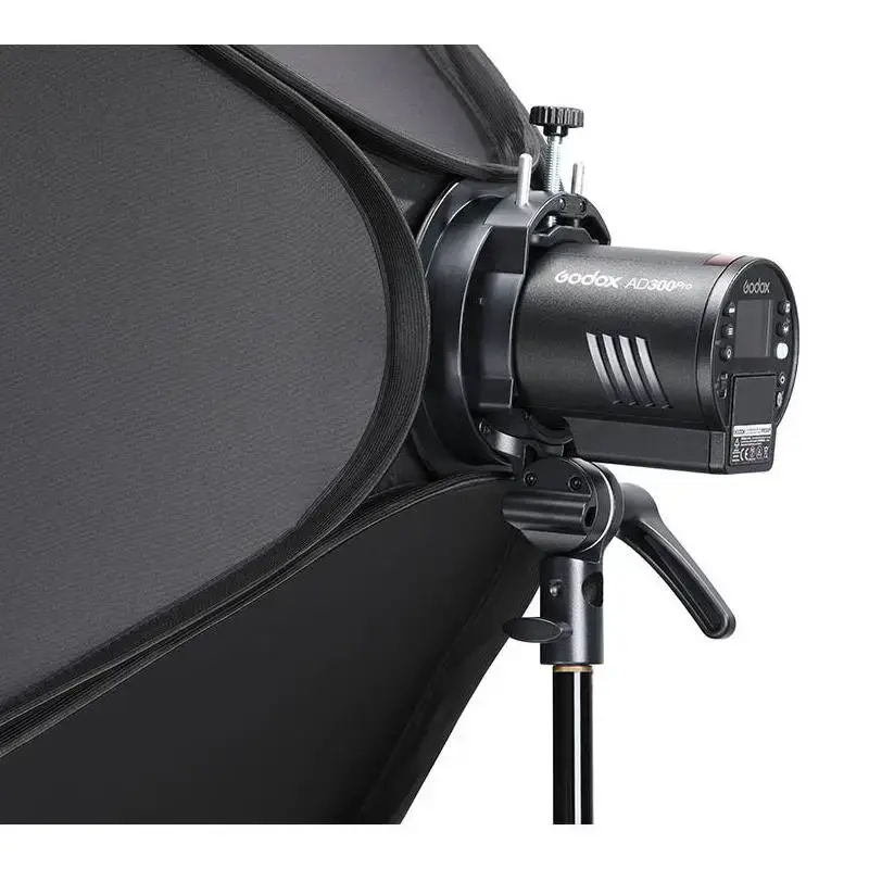 Софтбокс легко и быстро раскладывается по принципу лайт-диска: его тканевые стенки натянуты на упругие металлические спицы. Сборка и установка комплекта займет не несколько минут.