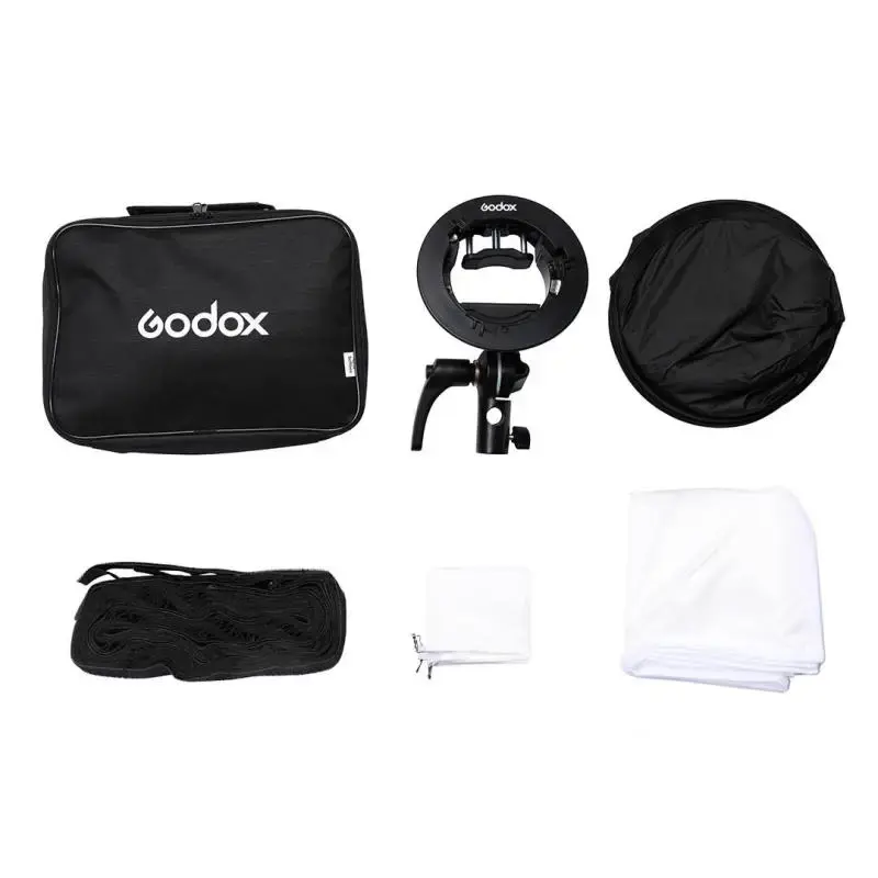 Софтбокс Godox SGGV6060 (60x60cm) предназначен для использования с накамерной вспышкой и разработан в для фотографов, работающих на выездных фотосъемках. Комплект состоит из софтбокса, тканевого рассеивателя, сотовой решетки и кронштейна-адаптера S2. Прочная компактная сумка размером 32х22х8см отлично подходит для переноски и хранения.