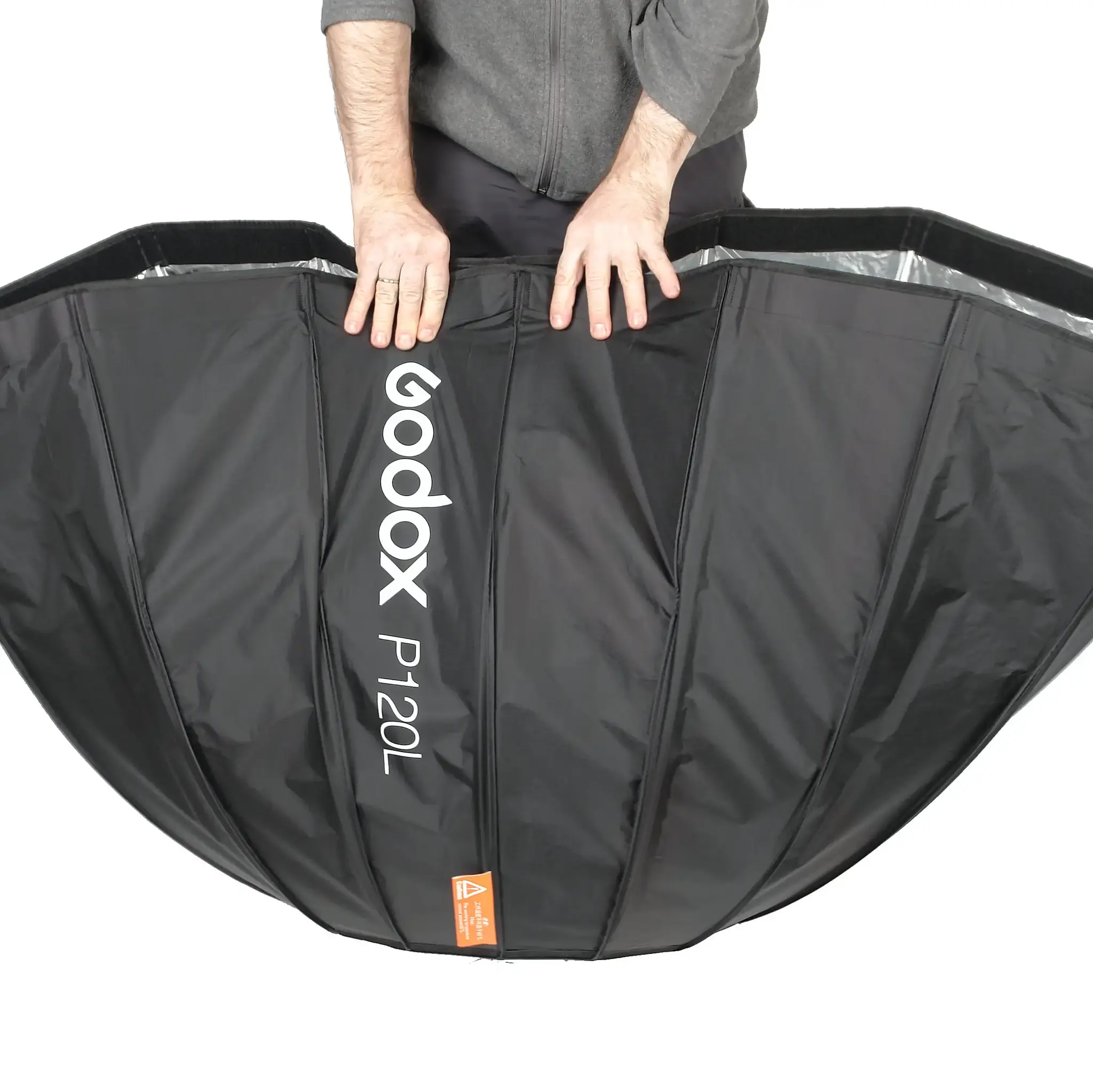 Закрытая конструкция исключает паразитные блики и потери светового потока. Отражающая серебристая поверхность обеспечивает равномерное распределение света внутри софтбокса, белые полупрозрачные рассеиватели делают свет более мягким.
