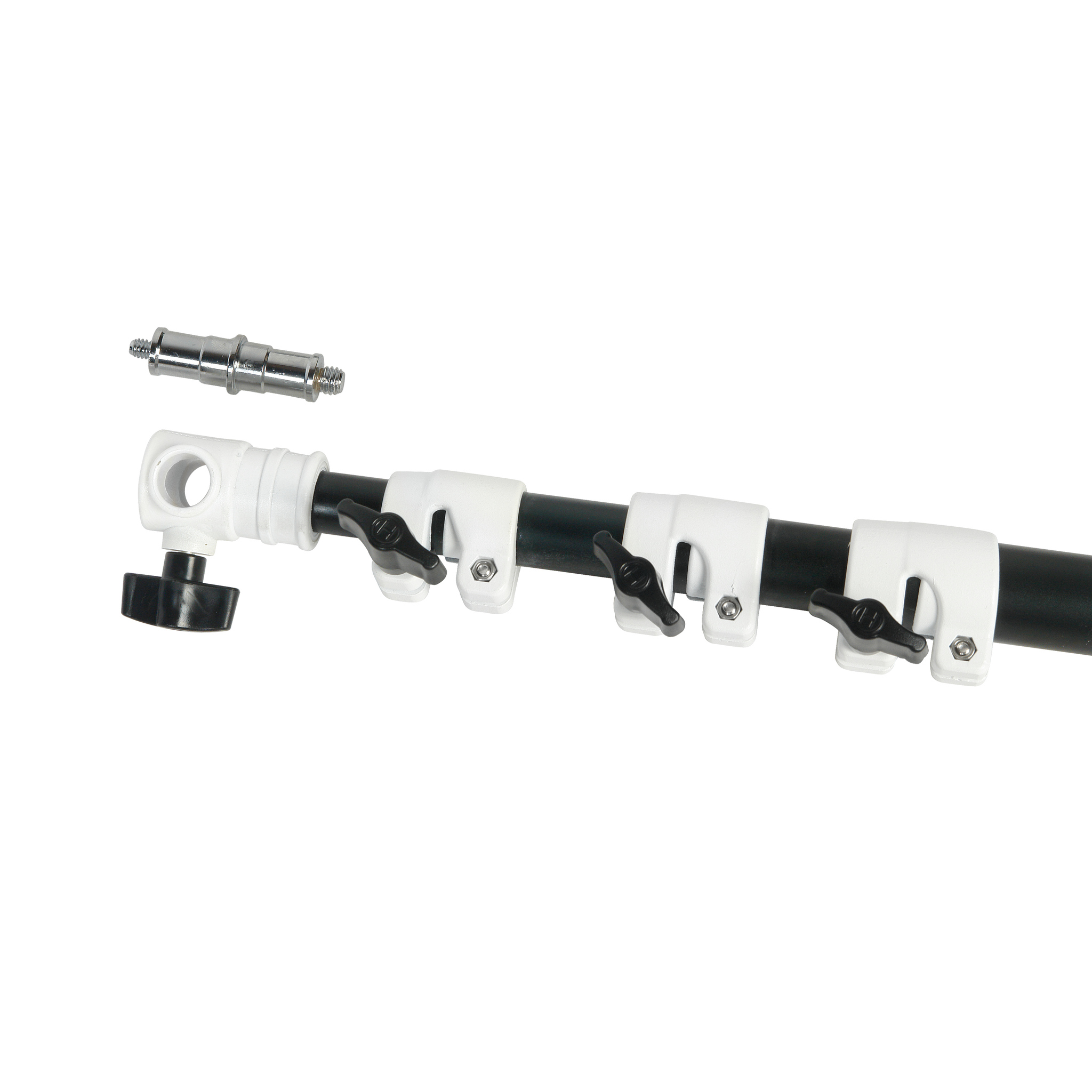 Секции телескопической колонны надежно соединяются между собой винтовыми зажимами. Съемную центральную колонну можно использовать отдельно, например в качестве перекладины для системы установки фона. Чтобы снять центральную колонну открутите защитную крышку.