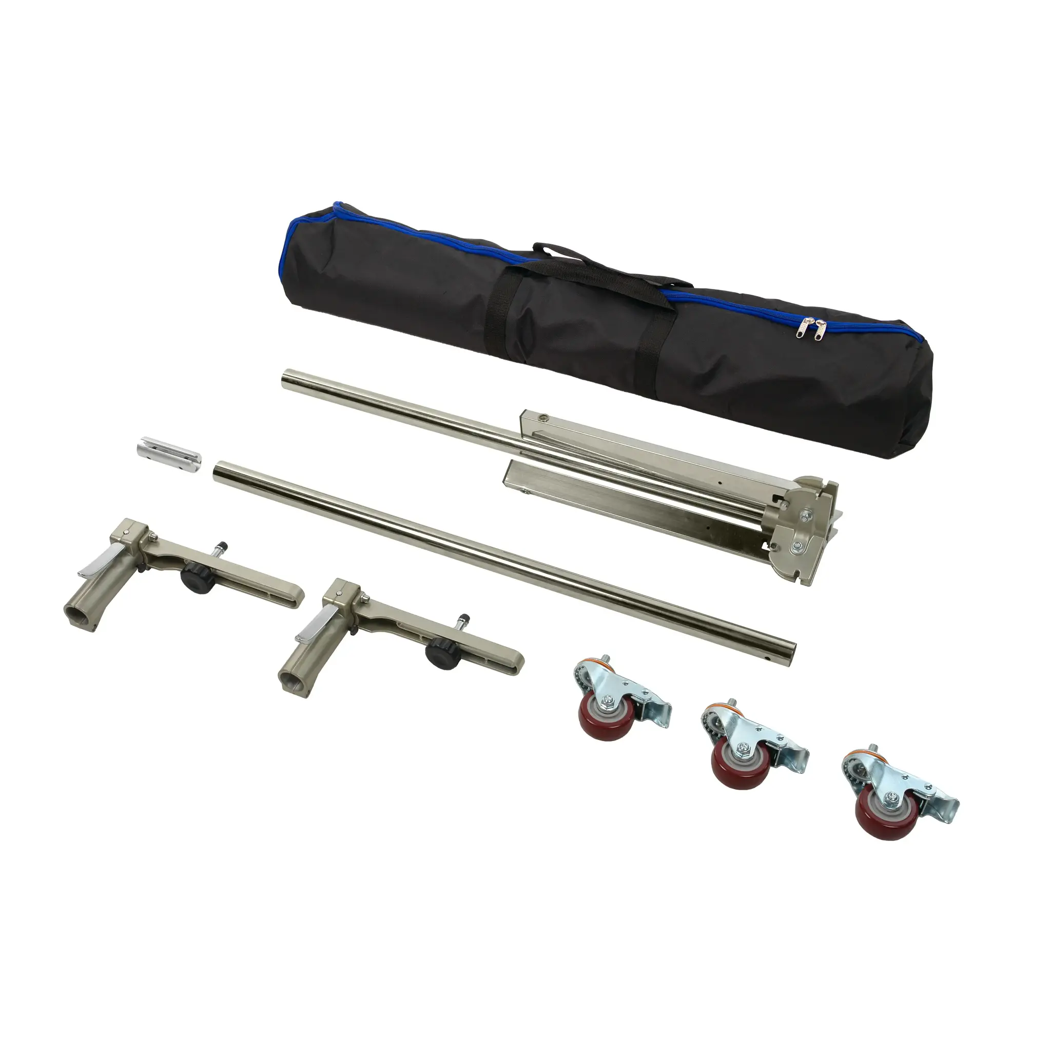 Монтажные консоли легко скользят по вертикальной стальной колонне диаметром 35 мм, состоящей из двух частей. Консоли надежно фиксируются на высоте от 40 до 198 см. Применив профессиональные навыки, можно соединить две консоли между собой в одну Т-образную консоль для совместного перемещения оборудования.