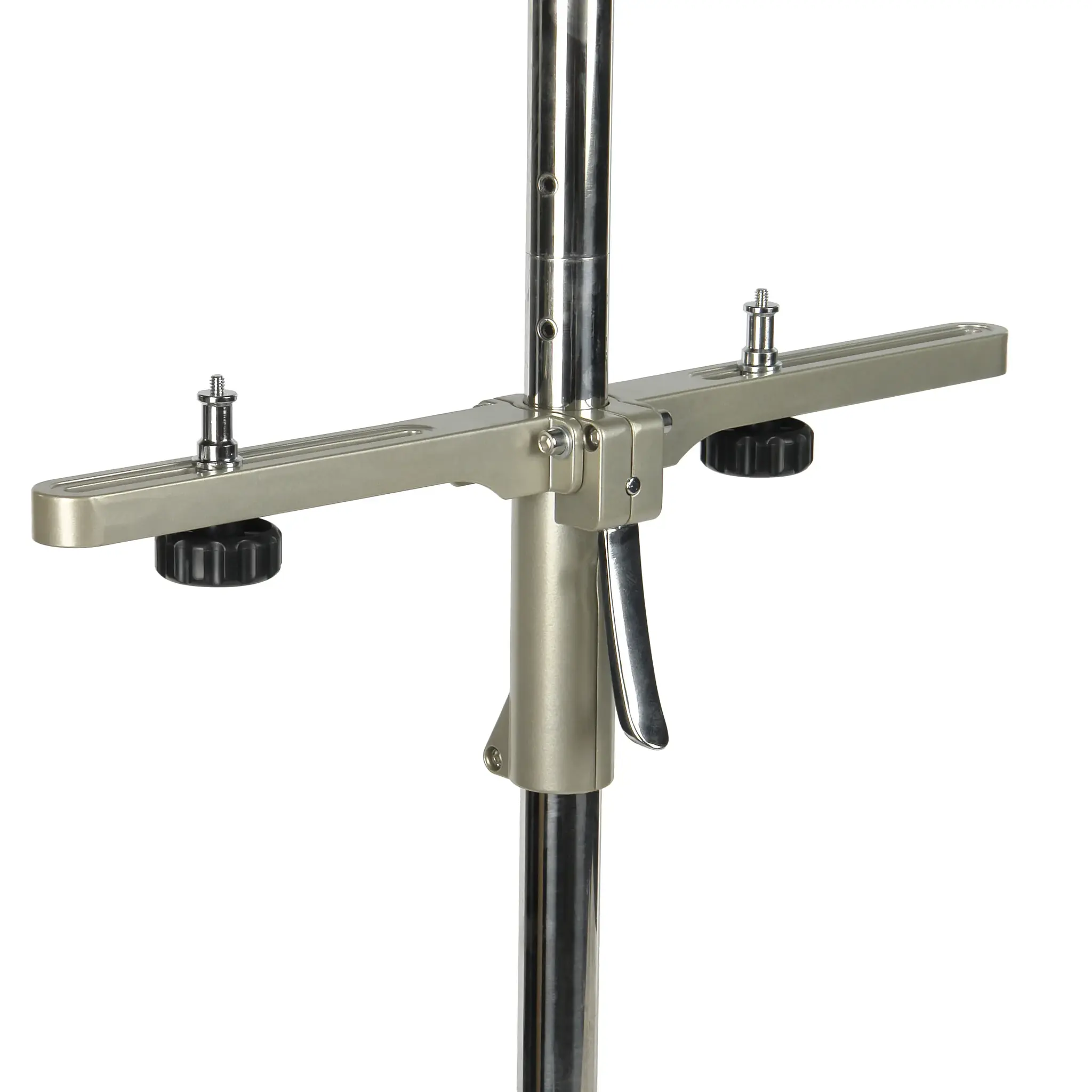 Две консоли с рычажными зажимами-фиксаторами позволяют быстро регулировать высоту установки оборудования. Приборы или аксессуары устанавливаются на консолях с помощью стандартных шпиготов 5/8'' с винтом 1/4''. Регулировка положения приборов на консоли по горизонтали возможна в пределах 16 см.