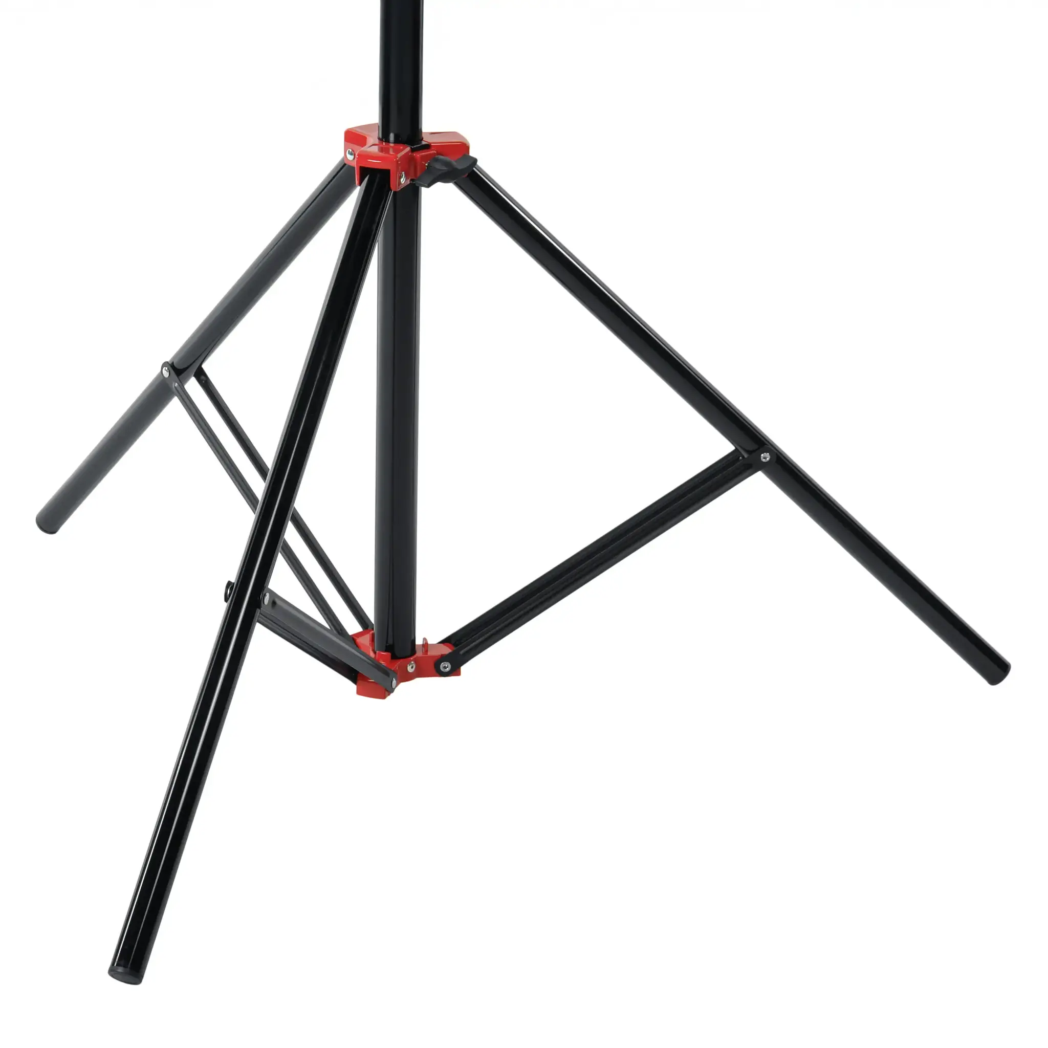 _x000D__x000D_ Основание стойки представляет собой складную треногу с винтовым фиксатором. Максимальный размах ножек достигает 106 см, обеспечивая надежную опору для крепления оборудования. Ножки стойки стабилизированы специальной алюминиевой растяжкой, повышающей общую устойчивость конструкции. При съемке в сложных условиях можно закрепить на основании стойки дополнительный груз, например, , заполненный песком._x000D_