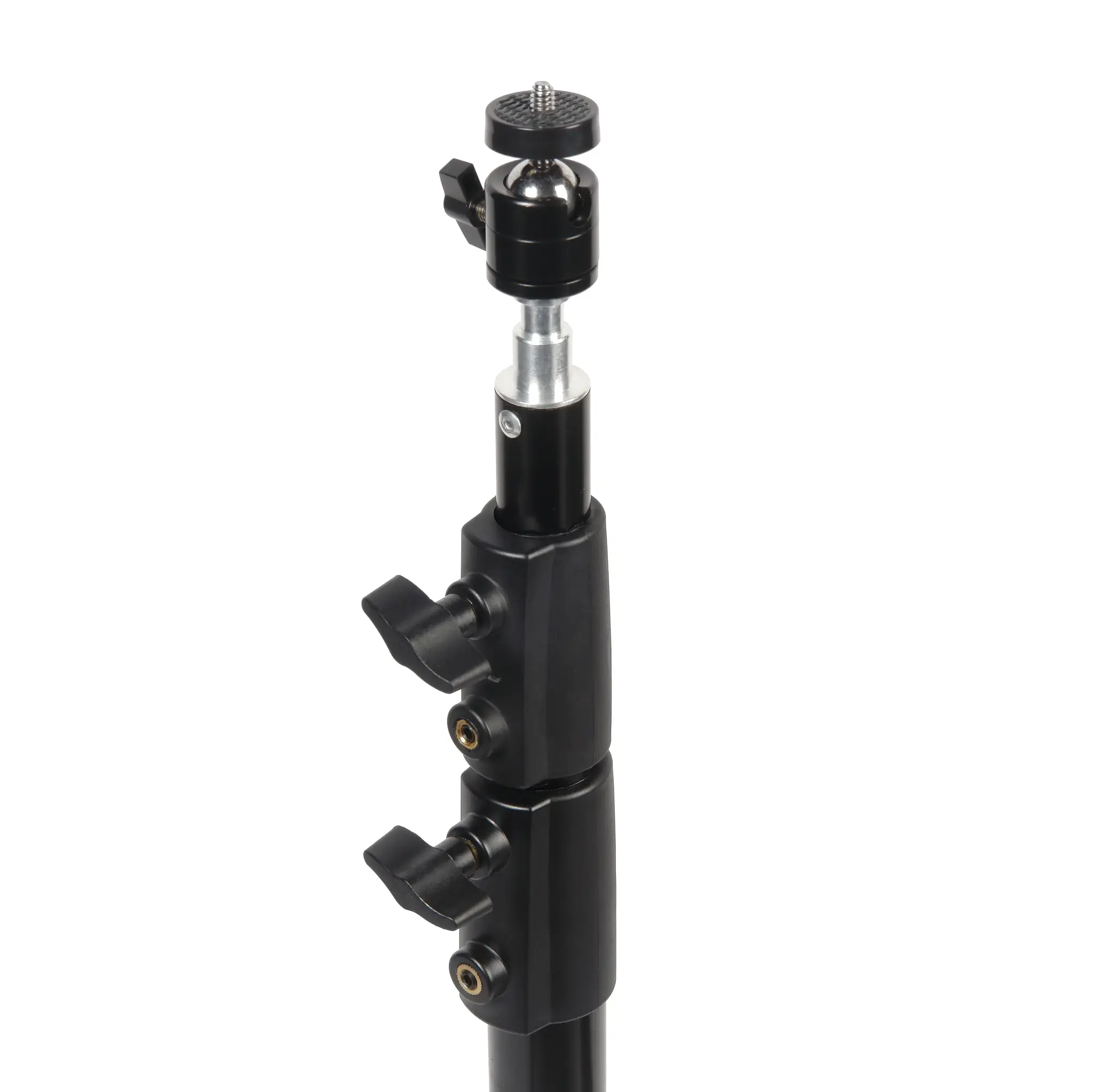 Стойка-тренога Falcon Eyes ST-808 снабжена шаровой головкой для установки цифровых камер, головка крепится на резьбу 1/4” на винт стандартного шпигота 5/8” (несъемного), который запрессован в верхнюю секцию стойки. Шаровая головка имеет винт фиксации угла поворота шара и снабжена посадочным винтом 1/4” для крепления цифровой камеры.