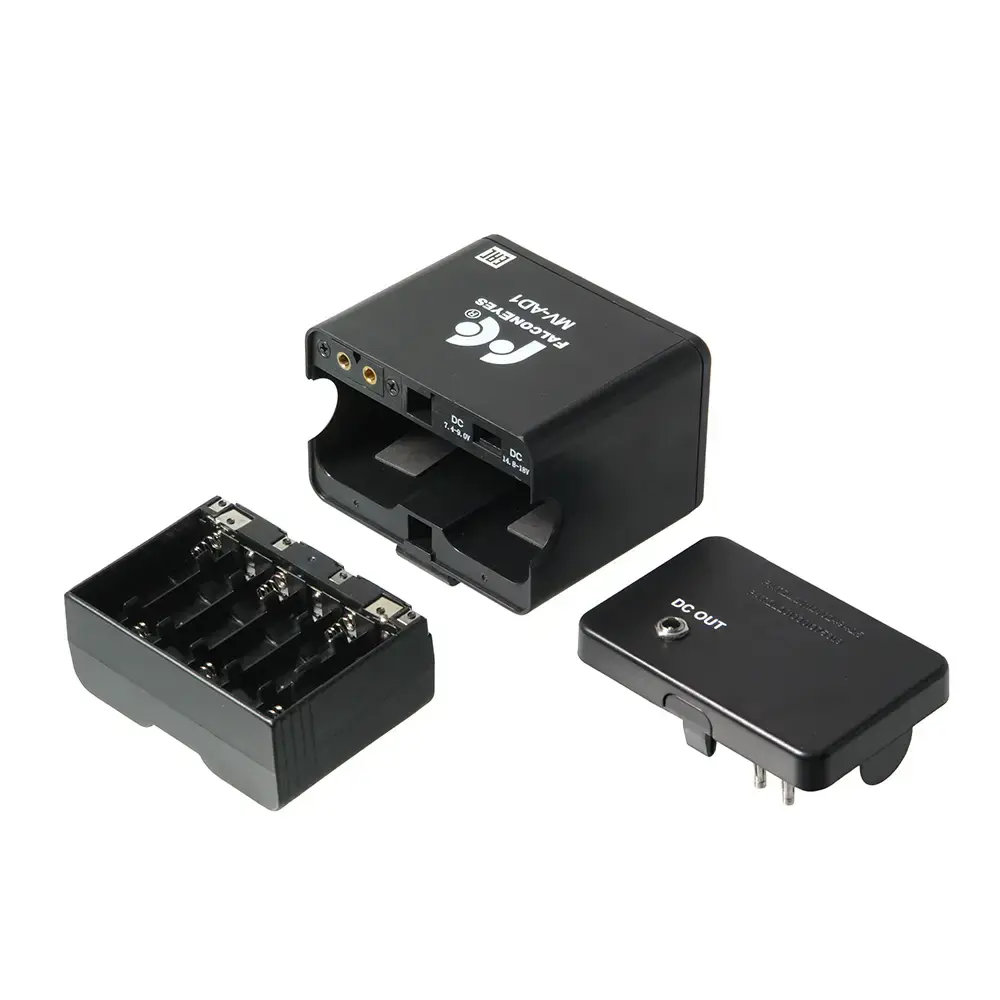 Осветитель Falcon Eyes DVR-240D работает от сети 110-220V, а так же комплектуется батарейным блоком MV-AD1, работающим от 12 батареек АА или двух литиевых аккумуляторов Sony NP-F750F 7.4V 4600mAh (батарейки и аккумуляторы приобретаются отдельно).