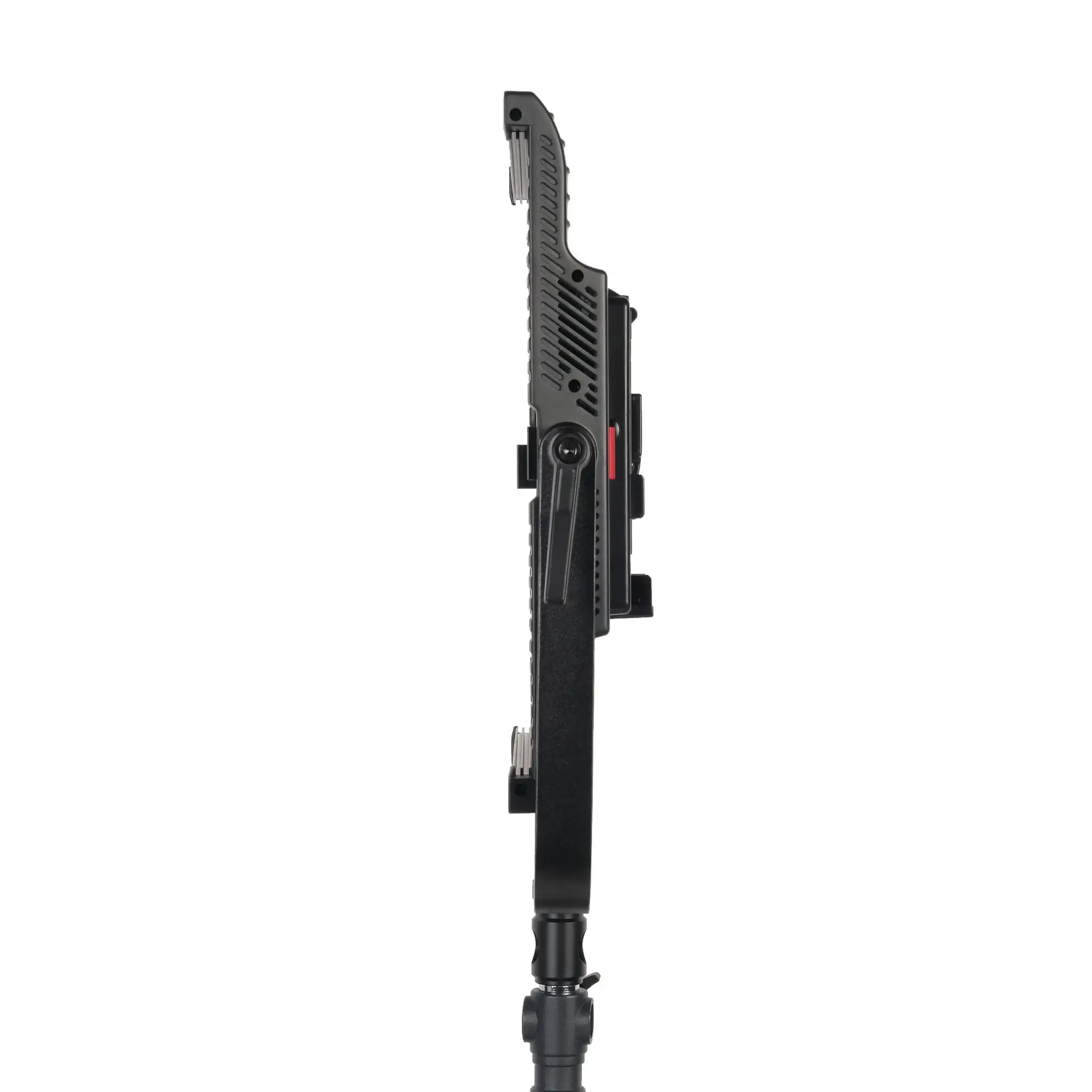 Рядом расположена аккумуляторная площадка для размещения одного аккумулятора типа V-mount (приобретаются отдельно). В случае питания от сети, комплектный сетевой адаптер 220В может также закрепляться на аккумуляторной площадке.