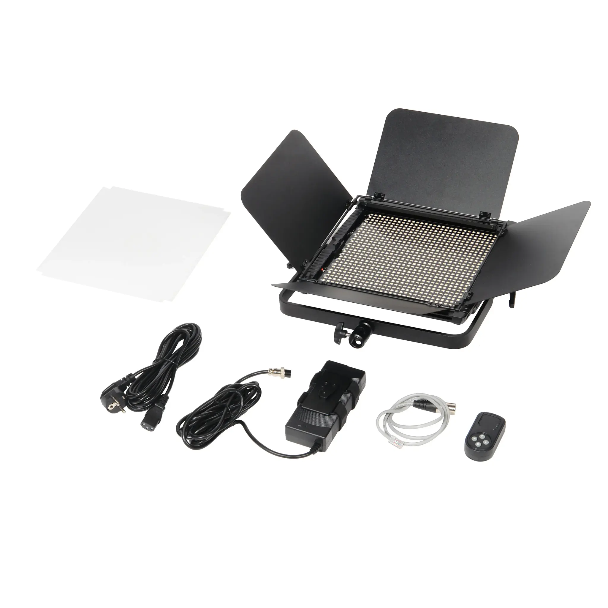 Осветитель Falcon Eyes FlatLight 100 LED Bi-color – светодиодная панель с регулируемой цветовой температурой 3200К-5600К и мощностью до 100Вт, содержащая 900 SMD-светодиодов (450 теплого и 450 холодного белого света). Параметры осветителя могут управляться дистанционно при помощи комплектного пульта ДУ на частоте 2.4 ГГц или по протоколу DMX (пульт DMX приобретается дополнительно). В комплект входит аккумуляторная площадка, дающая возможность питания от аккумулятора типа V-mount в случае отсутствия сети. Поэтому осветитель будет востребован фотографами и видеографами, работающими как в студии, так и за ее пределами.