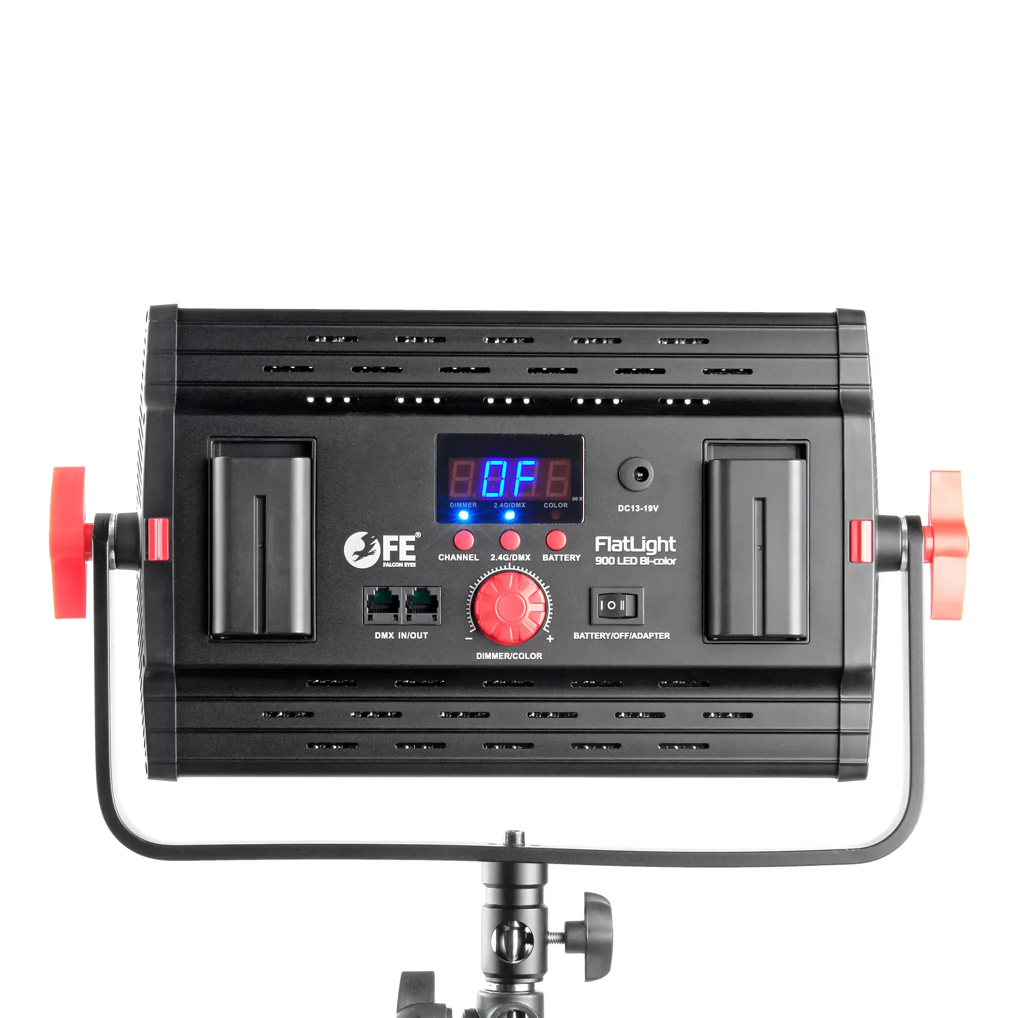 Осветитель светодиодный Falcon Eyes FlatLight 900 LED Bi-color представляет собой светодиодную панель из 900 светодиодов размером 26 x 17 см с регулируемой цветовой температурой, DMX-управлением, беспроводным пультом дистанционного управления, 4-лепестковыми шторками и возможностью питания от аккумуляторных батарей серии NP-F. Осветитель подходит для кино- и видеопроизводства, фотографии.
