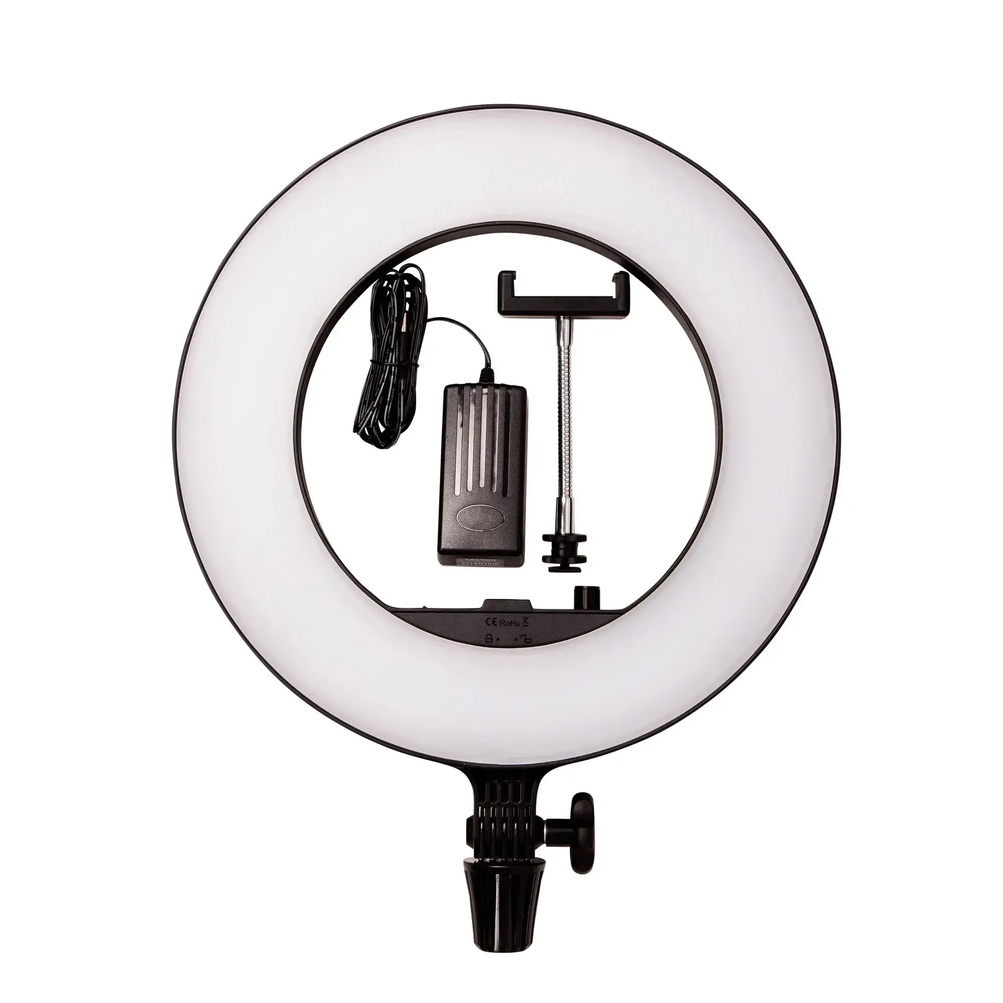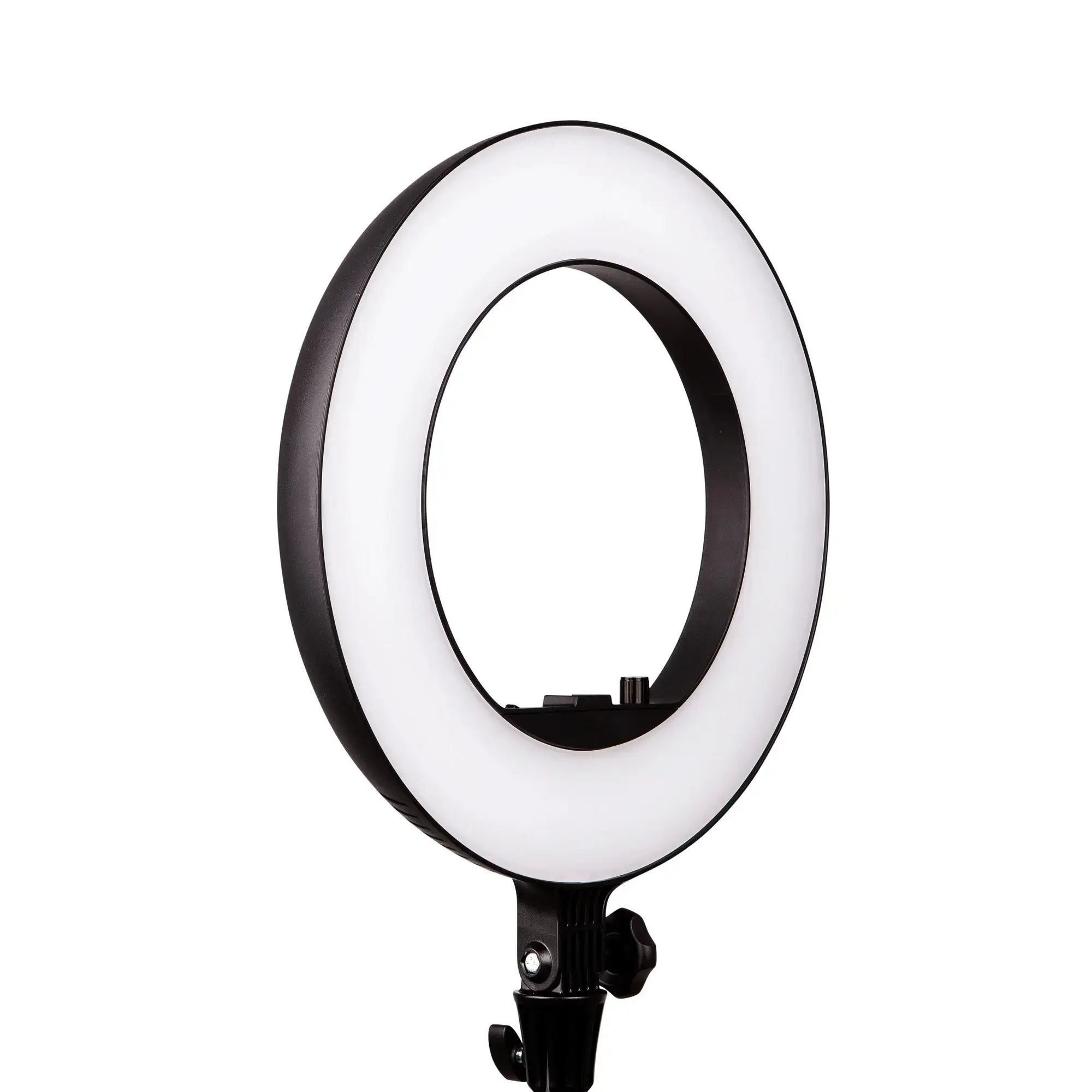 Кольцевой светодиодный осветитель LR180 с цветовой температурой 5600К и плавной регулировкой яркости, подходит для портретной съемки или подсветки макияжа.