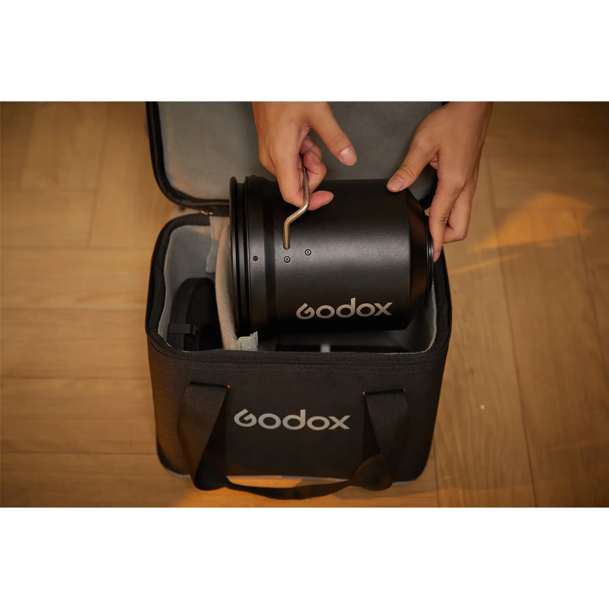 Godox DL5 - усилитель параллельного луча, который предназначен для повышения интенсивности центрального пучка света фокусирующего светодиодного фонаря S60. С добавлением усилителя параллельного луча DL5 луч от S60 станет более концентрированным, что сделает создаваемое освещение более интенсивным