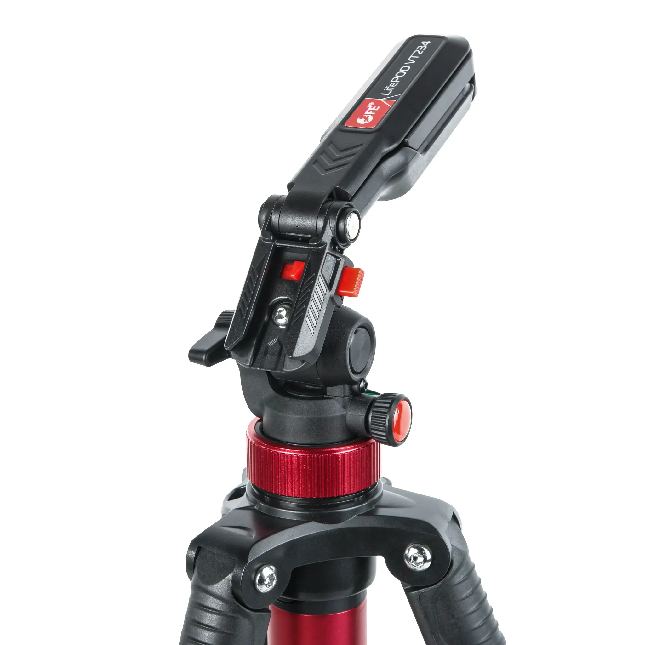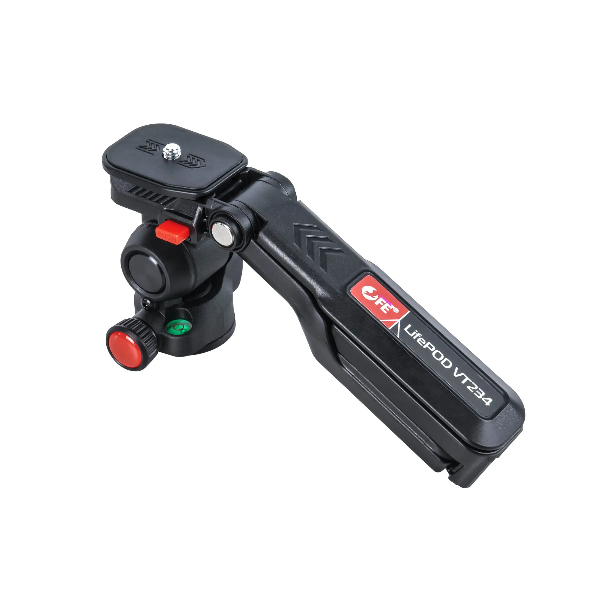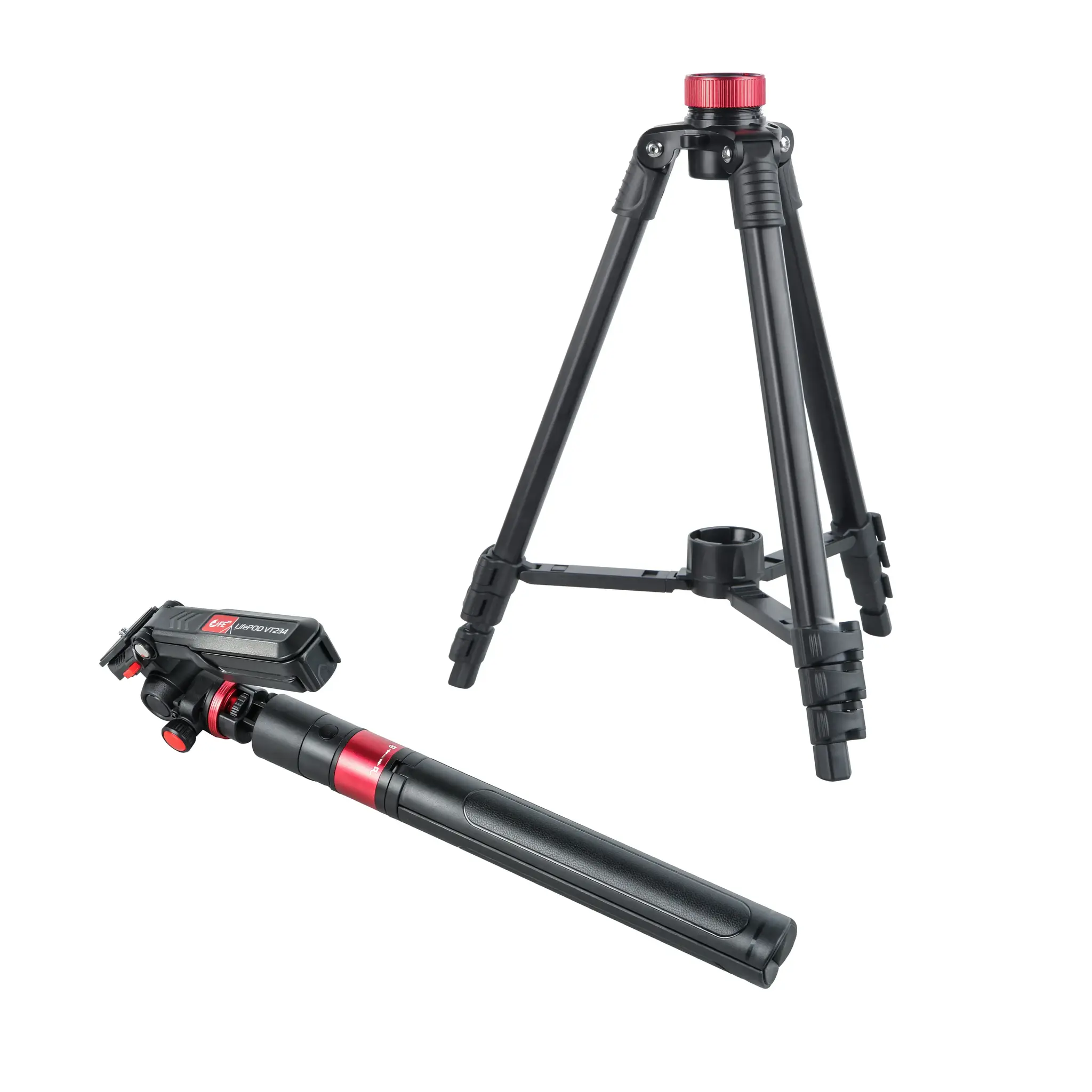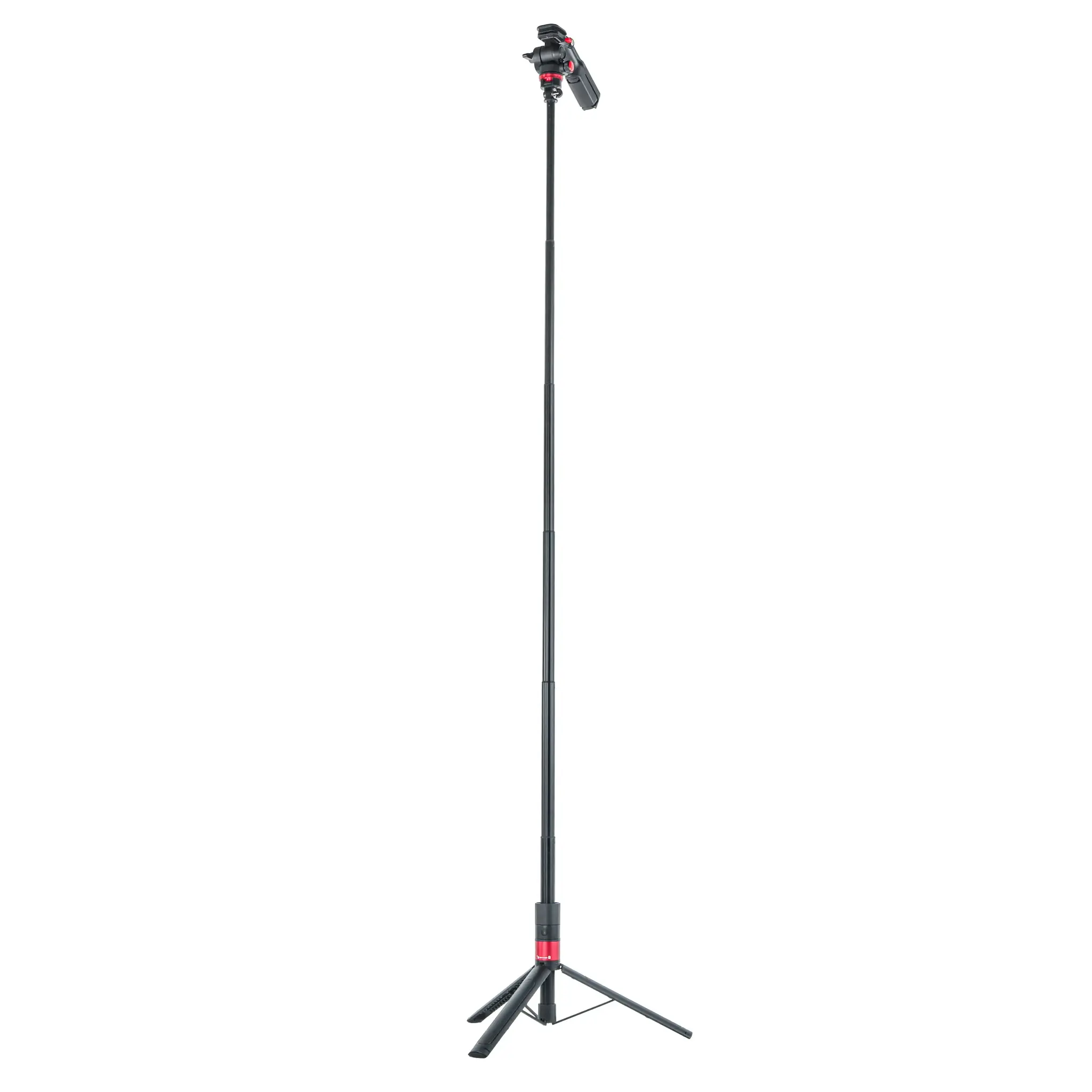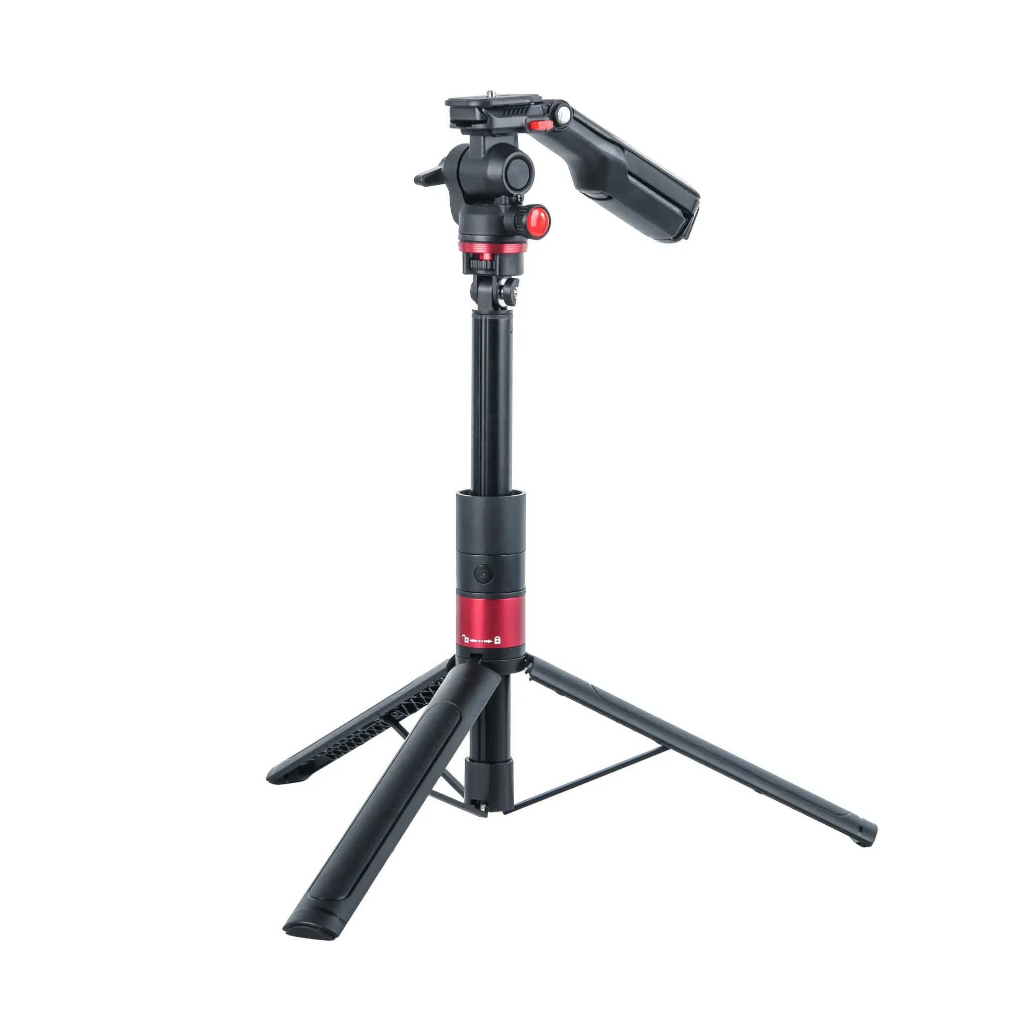 Максимальная нагрузка 1.5 кг, высота от 42 до 234 см, 4 секции, телескопическая центральная колонна-трансформер: превращается в монопод или селфи-палку, 2D видеоголовка с винтом 1/4" и быстросъемной площадкой, панорамирование на 360°/ -60° ... +90°, рукоятка-держатель с регулируемой шириной 56–86 мм, пузырьковый уровень, селфи-кнопка Bluetooth, защитный чехол для транспортировки. Материалы: алюминиевый сплав и пластик, вес 1,16 кг.