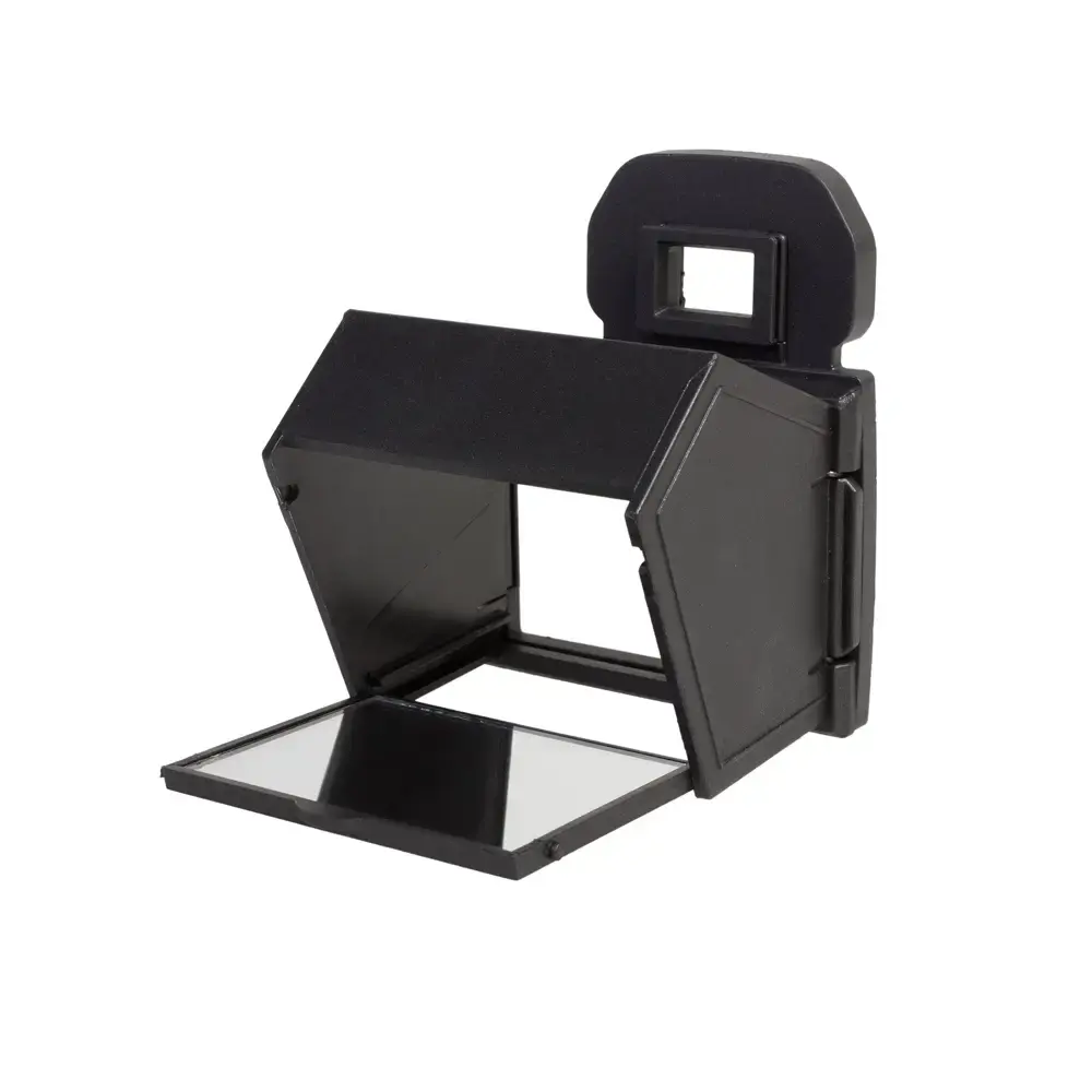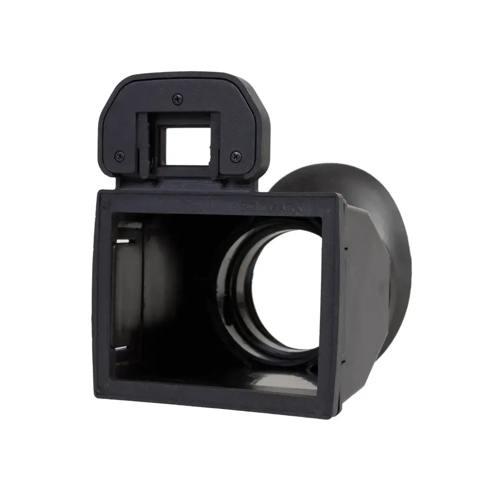 Второй насадкой является угловой видоискатель ЖК монитора. С помощью системы зеркал позволяет повернуть изображение под углом 90˚ и увидеть отражение ЖК-монитора непосредственно над камерой. Это удобно при макросъемке, съемке с крайних нижних точек (когда трудно получить доступ к экрану низко расположенного фотоаппарата) и съемке событий происходящих сверху - птицы в полете, самолеты, парашютисты и т.д.