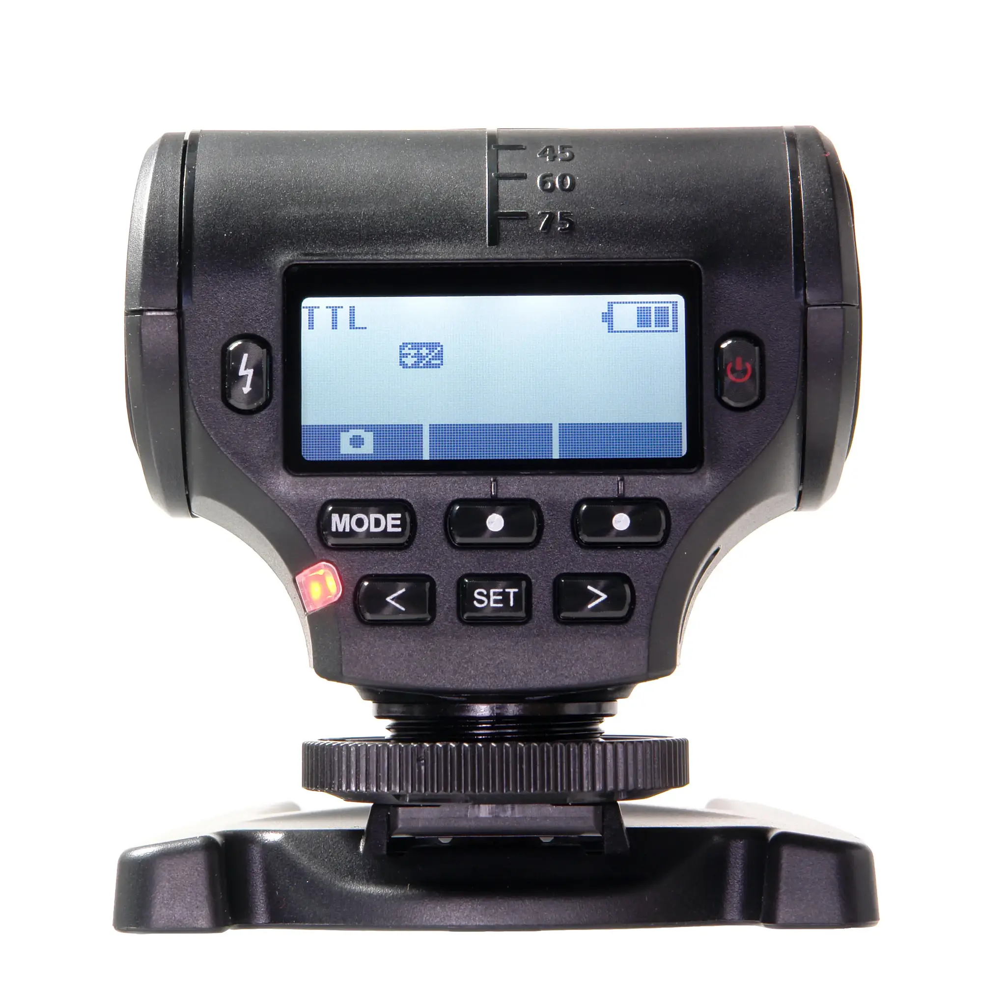 Интуитивный интерфейс управления и контрастный ЖК-дисплей с подсветкой обеспечивают простоту эксплуатации вспышки. Настраивать режим работы вспышки, тип синхронизации, компенсацию мощности и другие параметры можно используя панель управления на вспышке.