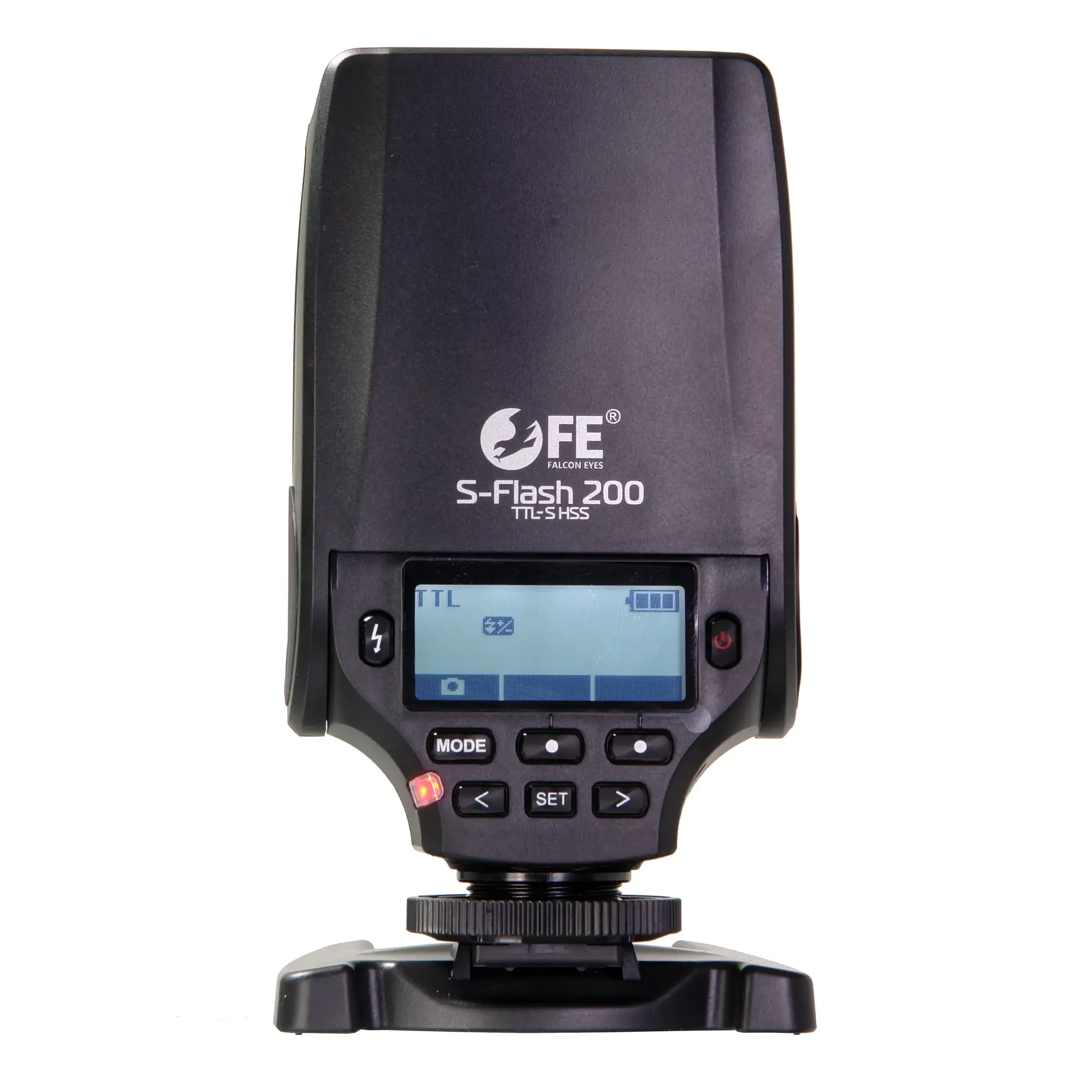 Falcon Eyes S-Flash 200 TTL-S HSS – многофункциональная компактная вспышка со светодиодной подсветкой, металлической ножкой и поворотной головкой. Вспышка совместима с системой TTL для работы в полностью автоматическом режиме на камерах Sony. Вспышка поддерживает режимы: автоматический TTL, ручной М, ручной режим ведомой вспышки S1/S2, стробоскоп, LED-подсветка.