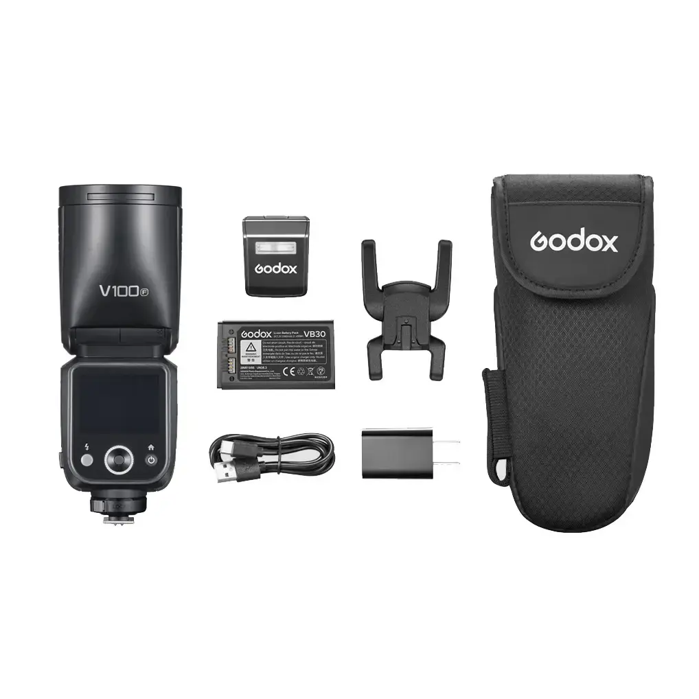 Godox V100F – накамерная вспышка с TTL-режимом управления, сенсорным экраном и питанием от литий-ионного аккумулятора с разъемом USB-C. Она задает новый стандарт для профессионалов, впервые предоставляя мощность 100 Дж в компактном накамерном исполнении.