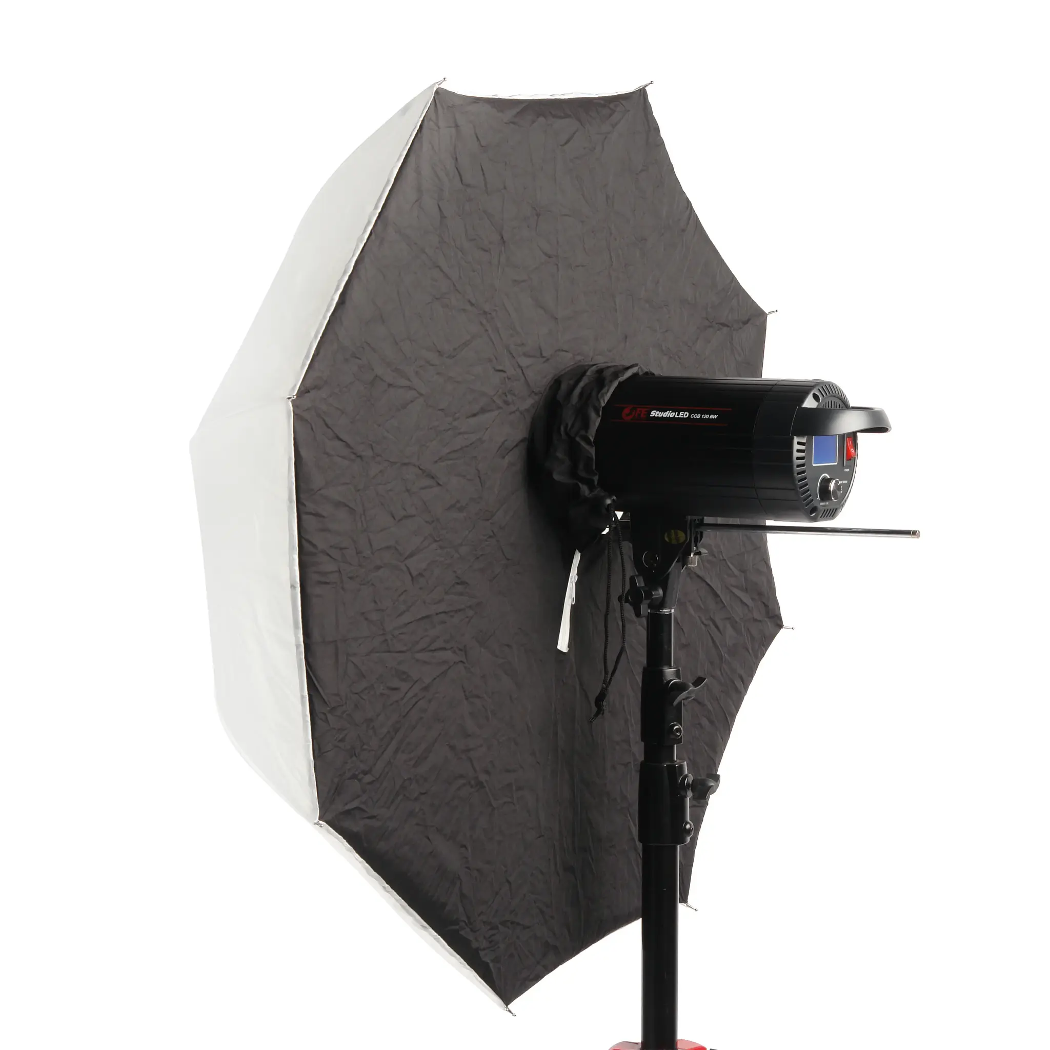 Белый просветный зонт UB-40W представляет собой зонт-октобокс с внутренней отражающей поверхностью (ее внешняя часть черная, внутренняя белая). Зонт используется совместно со студийными вспышками или светодиодными осветителями для получения мягкого направленного света большой площади с минимумом потерь мощности на рассеивающей ткани.