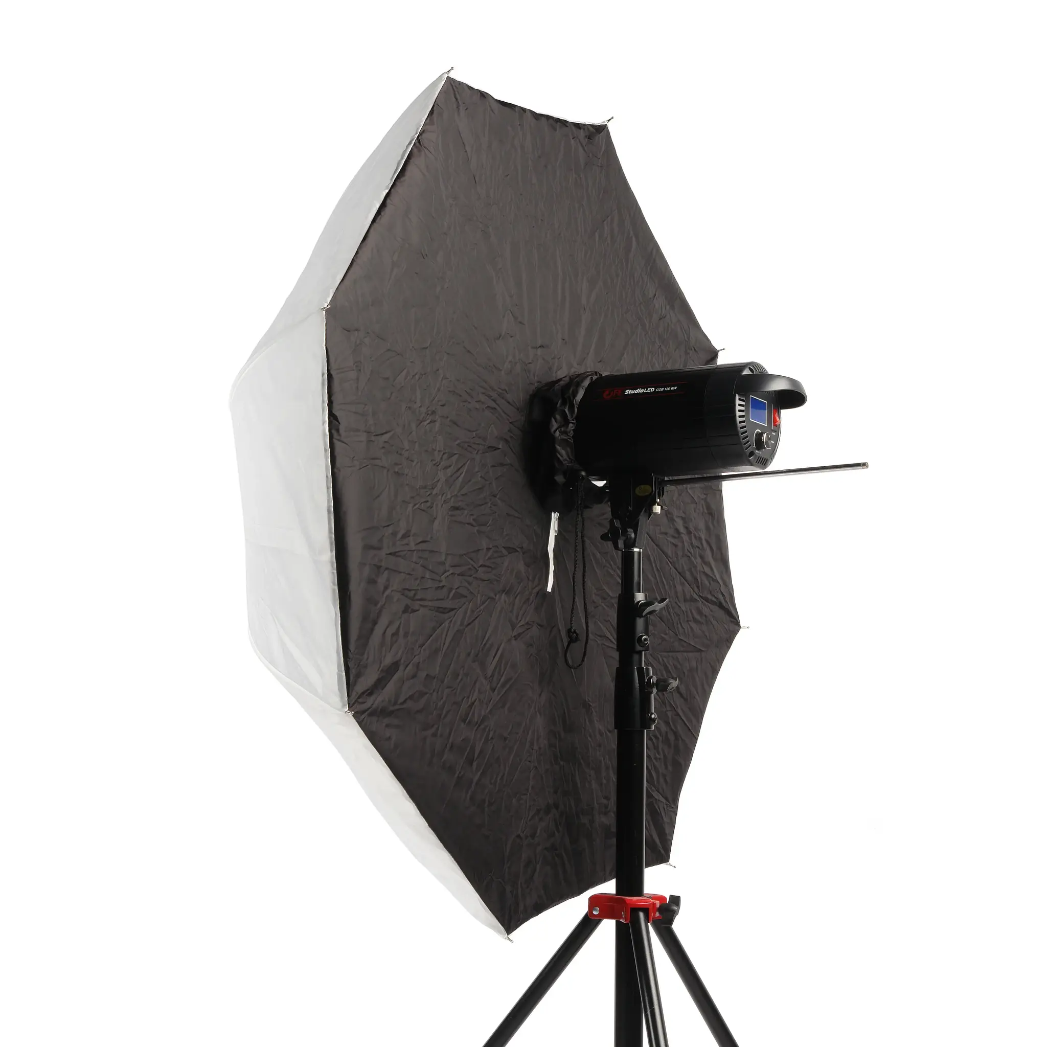 Белый просветный зонт UB-60W представляет собой зонт-октобокс с внутренней отражающей поверхностью (ее внешняя часть черная, внутренняя белая). Зонт используется совместно со студийными вспышками или светодиодными осветителями для получения мягкого направленного света большой площади с минимумом потерь мощности на рассеивающей ткани.